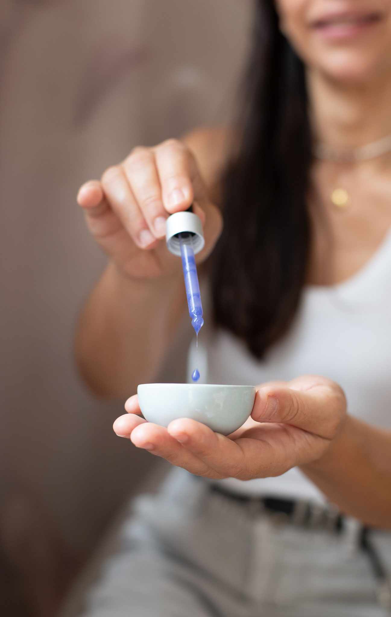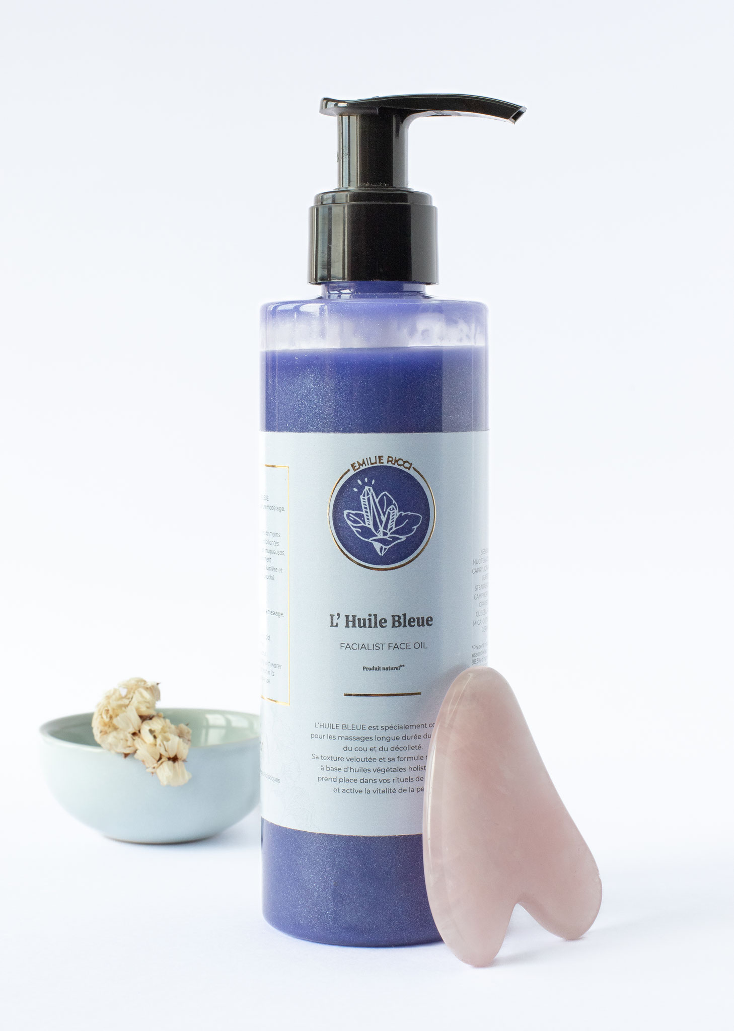 L’Huile Bleue est spécialement conçue pour les massages longue durée du visage, du cou et du décolleté.
